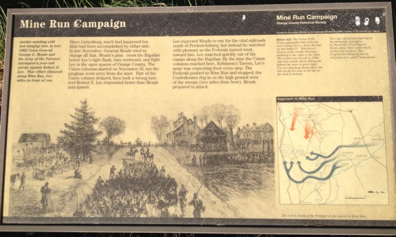 Not much remains of the Mine Run battlefield today: a few earthworks run through the yards of homes that have been built along the former Confederate line; lunettes lurk along the Orange Plank Road, guarding the westward approaches; an old road trace reaches up from Mine Run itself. The geography is easy enough to read if you know what to look for, but mostly, the battlefield has faded into historical obscurity like the engagement itself.