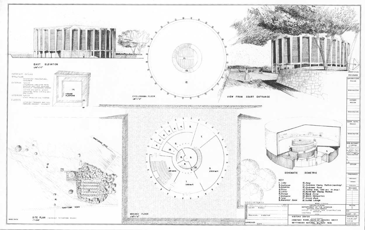 Note: Preservationists come in all stripes. The Richard Neutra building itself is considered by architectural preservationists to be worth saving. In 2010, a Federal ruling protecting the modernist landmark was issued, saving the Neutra building, which sits on the battle line of Cemetery Ridge.