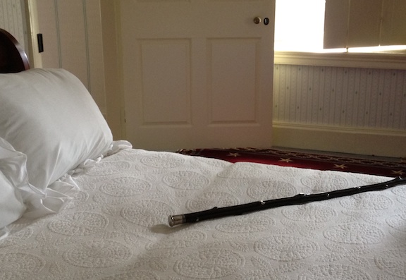 I stood only a foot and a half from the bed Van Buren died in a century and a half ago to the day. On the bed laid a hickory walking stick—a gift from Old Hickory himself—silver-tipped and engraved, with silver-capped knots that bear the letters to spell out “Andrew Jackson.”