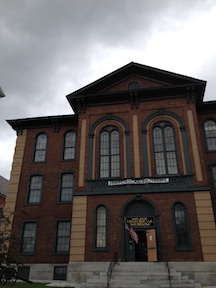 The St. Albans Academy building now houses the local historical society, which devotes a full downstairs room to the raid. A three-dimensional map of Lake Champlain dominates the center of the room, and the exhibits wrap around the room like a crowd pushed up against the walls.