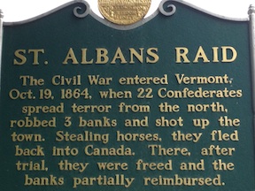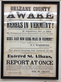 On October 19, 1864, twenty-two Confederate partisans targeted the railroad town for attack because of its banks. “For the Southern Raiders, St. Albans was an ideal target,” one of the museum displays says. It was “a prosperous town close to the border, easily accessible, accustomed to strangers in town and completely undefended.”