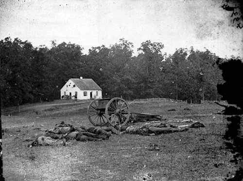 At the Battle of Antietam, Lee’s artillery would play a major part in the defense and actually play a role in defending all three sections of the Confederate battle line. By 9 a.m. Lee’s batteries had already suffered enormous casualties but following the assaults along the Sunken Road and middle of the Confederate defensive line Lee’s artillerists actually found themselves the only Confederate defending a few hundred yard line. They continued at a rapid rate firing shells into the Union ranks until the blue-clad soldiers halted their advance and infantry was rounded up to plug the gap. The now famous photo of Confederate dead in front of Dunker Church is of members of batteries commanded by Stephen Lee.