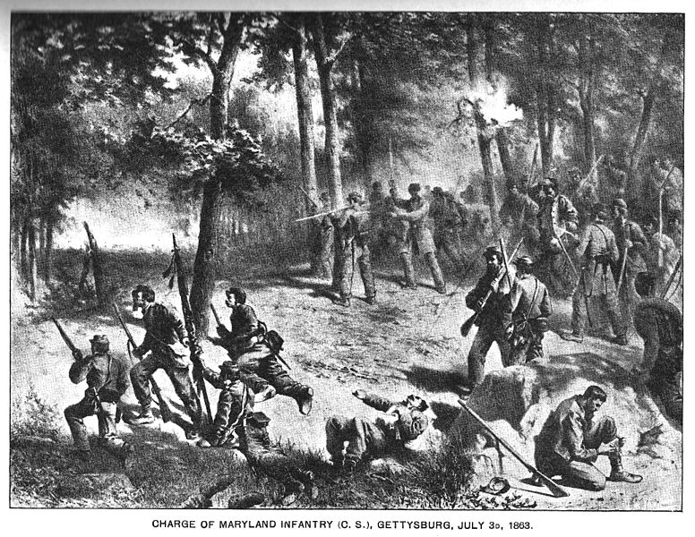 Steuart, seeing the destruction of his beloved brigade, including the 1st Maryland who hailed from his home state, was distraught. As his men reformed behind some defensive works to fend off the anticipated Union counterattack, Steuart could be seen and heard walking back and forth, exclaiming “My poor boys, my poor boys.” Accurately summing up the advance, a soldier from the 3rd North Carolina would later write “that last…charge was a cruel thing for the Third.” Not many surviving Confederates, including Steuart, would have disagreed.