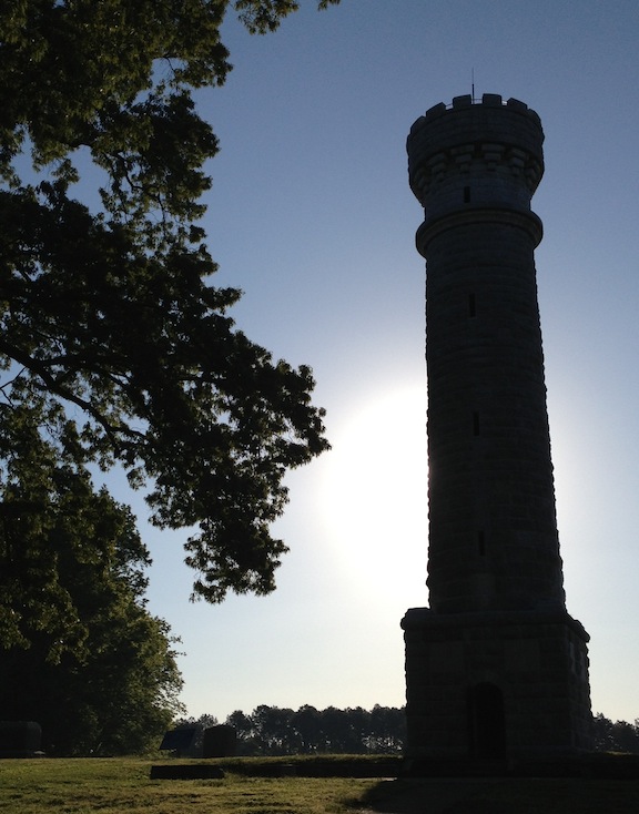 (Above:) The Wilder monument, rising 85 feet above the battlefield, is the tallest monument at Chickamauga. It stands amidst a cluster of other monuments, attesting to the severity of the fighting in the area around the Glenn Farm, as Federals desperately tried to prevent a total rout.
