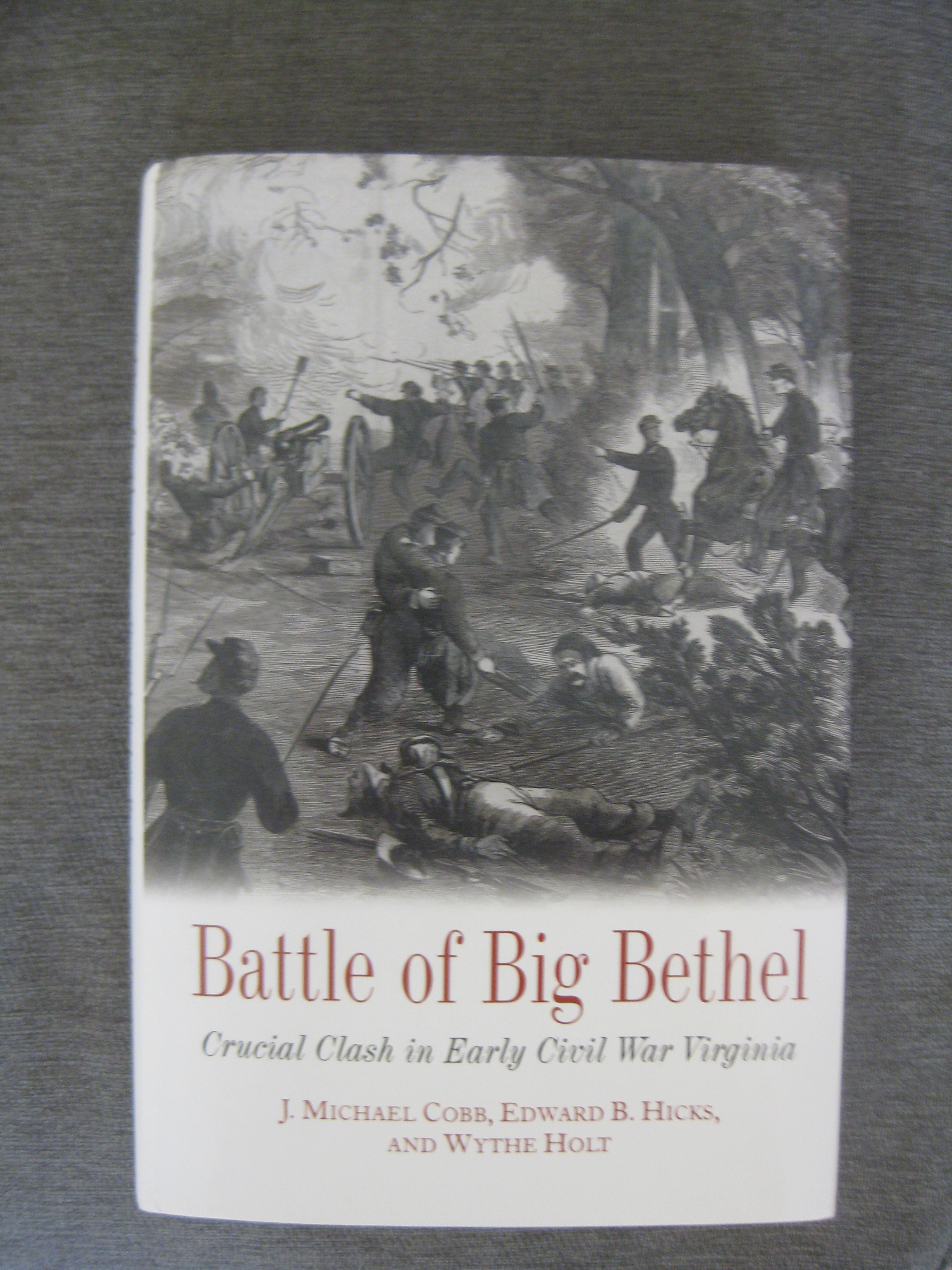 Thank you for mentioning Battle of Big Bethel: Crucial Clash in Early Civil War Virginia by J. Michael Cobb, Edward B. Hicks, and Wythe Holt. You can read more about the book on publisher Savas Beatie’s website here: http://tinyurl.com/892w8c3 (including an excerpt and an author interview!). View the book trailer here: http://tinyurl.com/mklmxz5