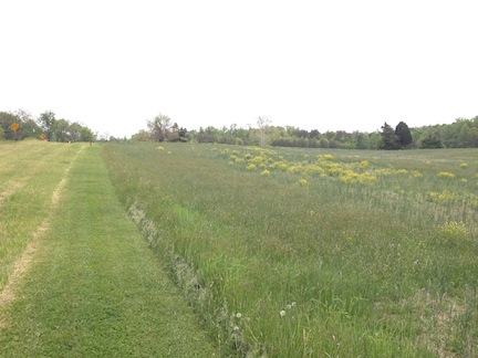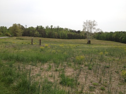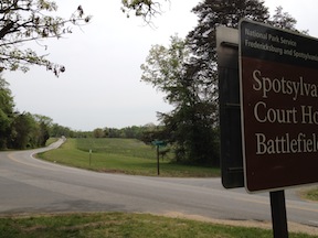 If you park at the Spotsy exhibit shelter and walk past the Sedgwick monument, the Laurel Hill trail begins on the far side of Brock Road (be careful of the traffic when you cross). Federal brigades deployed to the left and right of the road and made their way across the open field toward the Confederates positioned along the treeline in the distance.