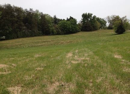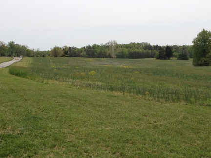 Advancing past the farm lane, Federals crossed ground that continued to dip and swell. A look westward shows the uneven topography that made it difficult for their formations to maintain cohesion as they continued their advance.