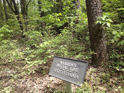 If you follow the Laurel Hill walking trail all the way around, it will take you along Hancock Road. There, the remains of Warren’s original line run parallel to the road. As his attacks faltered on the morning of May 8, he dug in. From his fortified position, he renewed his attacks later in the day; he launched attacks from this position again on May 10 and May 12. Although he had two limited breakthroughs, all the attacks ultimately proved futile.