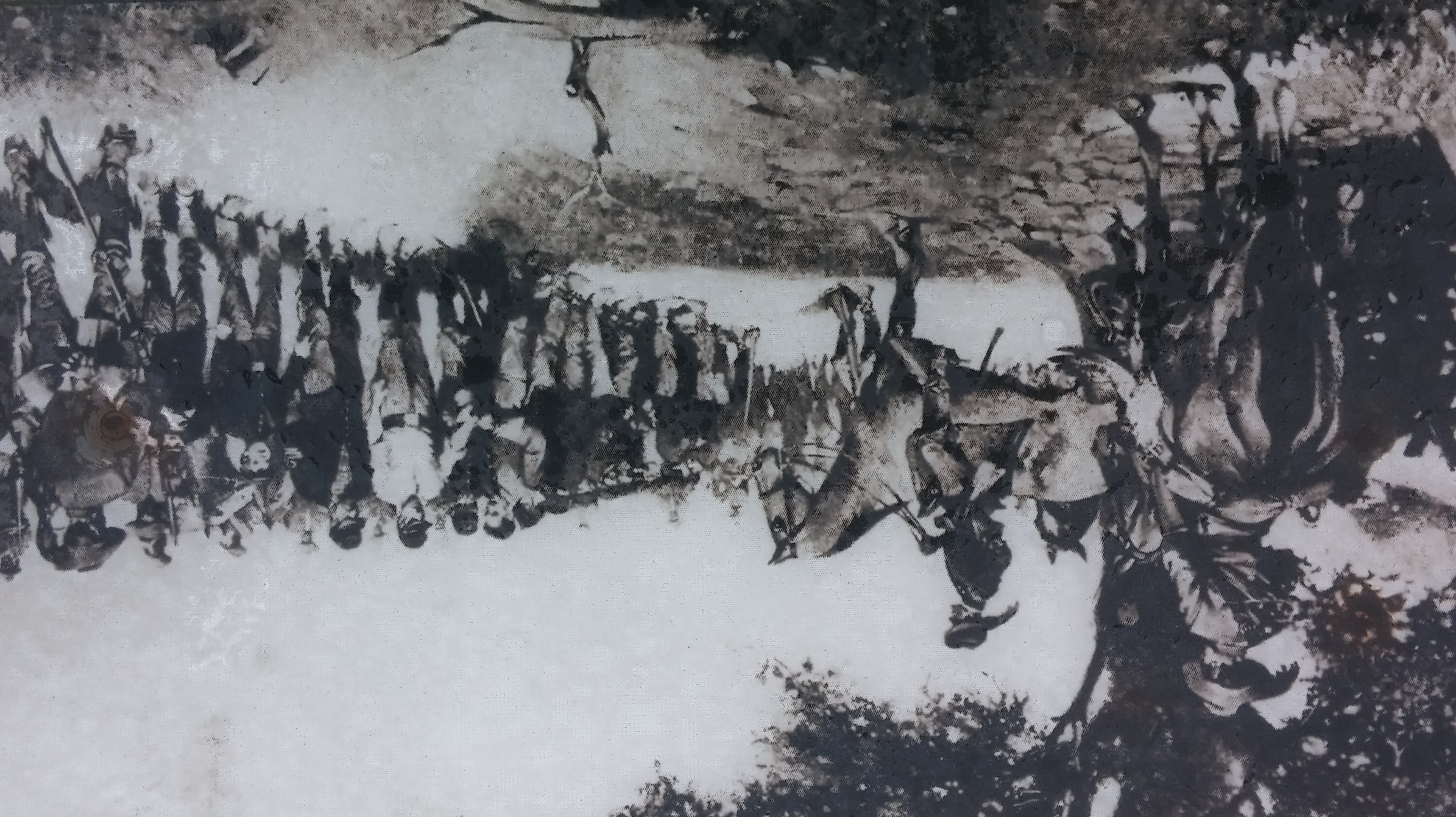On November 6th, Mosby gathered his partisans at Rectortown in northern Fauquier County. Nearly 500 of his men reportedly made the rendezvous, all wanting to be part of the spectacle. Present also were 27 Federal prisoners that were captured during the previous weeks from Mosby’s various raids, most from Custer’s command. To pay retribution for the seven of his executed men, Mosby called out for the 27 prisoners to draw a slip of paper out of a hat, with marks on seven of them. This method randomly selected seven men to be executed in kind. As the hat was passed down the line of prisoners, a drummer boy selected a marked slip. One of Mosby’s officers let Mosby know, and it was determined that they would redraw for the last slip and spare the life of the young man.