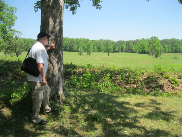Tom Schobert overlooks the landscape at Spotsylvania where his ancestor died