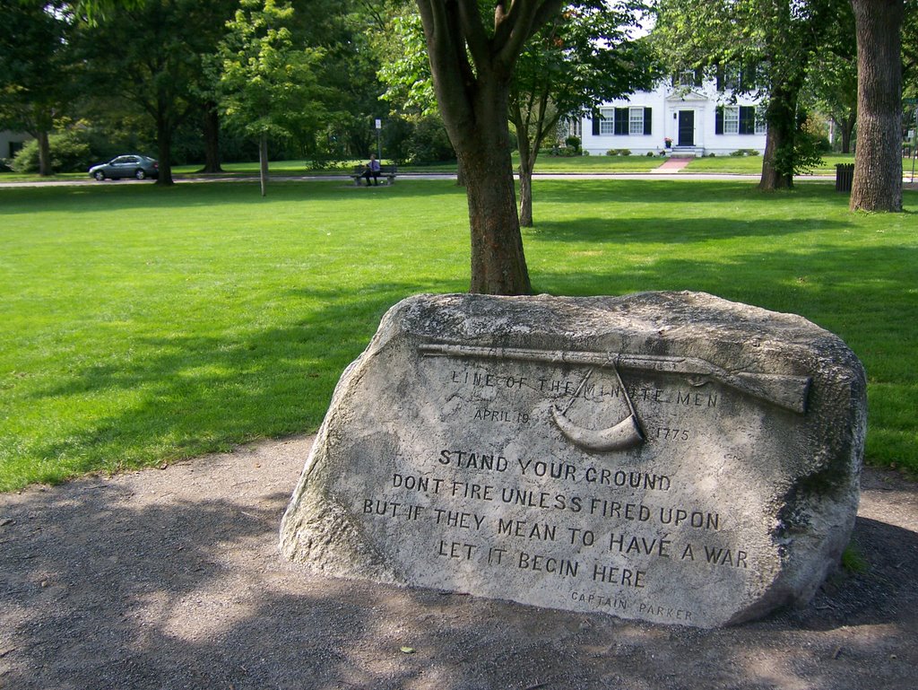 The quote that is now displayed on the boulder on the Lexington green marking the position of Parker’s Minutemen inspires patriotism. It coincides with our notion of farmers, tradesmen and clerks standing up to the British in the early morning of April 19th. But the actual event was probably witness to few stirring speeches and more anxiety with orders by a qualified militia Captain. Ordering his men to not fire and to not molest the British is feasible giving the situation and is also corroborated by many other accounts of men who there that morning. It does not make what Parker and his men did any less important or patriotic.