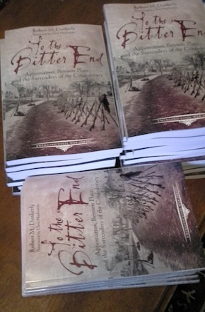 Look what arrived on Bert Dunkerly’s doorstep this afternoon: hot-off-the-presses copies of his book To the Bitter End: Appomattox, Bennett Place, and the Surrenders of the Confederacy.