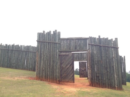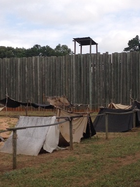 There’s grass here now, but imagine the impact of 36,000 pairs of feet, pounding it down to dust. The red Georgia clay would make the ground looked stained with blood.