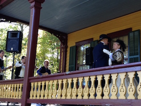 A Union encampment fills a small clearing, and on the opposite end of the lot, a Civil War Navy band plays under a tent. Later, there’ll be a bluegrass band that will play on the cottage porch. Among their period tunes, they’ll slip in Johnny Cash’s “Ring of Fire” and the theme from “Rawhide.”
