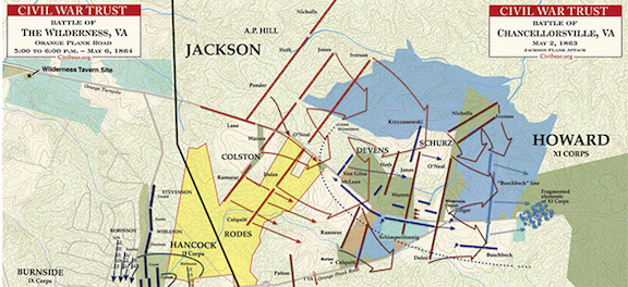 Early May is a busy month for Civil War buffs in my neck of the woods. In 1863, the battle of Chancellorsville roared through the eastern half of the Wilderness; in 1864, the battle of the Wilderness ripped through the western half of that same 70-acre second-growth forest. Today, May 4, serves as a transition day of sorts: the wind-down of Chancellorsville and the ramp-up toward the Wilderness. There’s plenty to remember, commemorate, and explore.