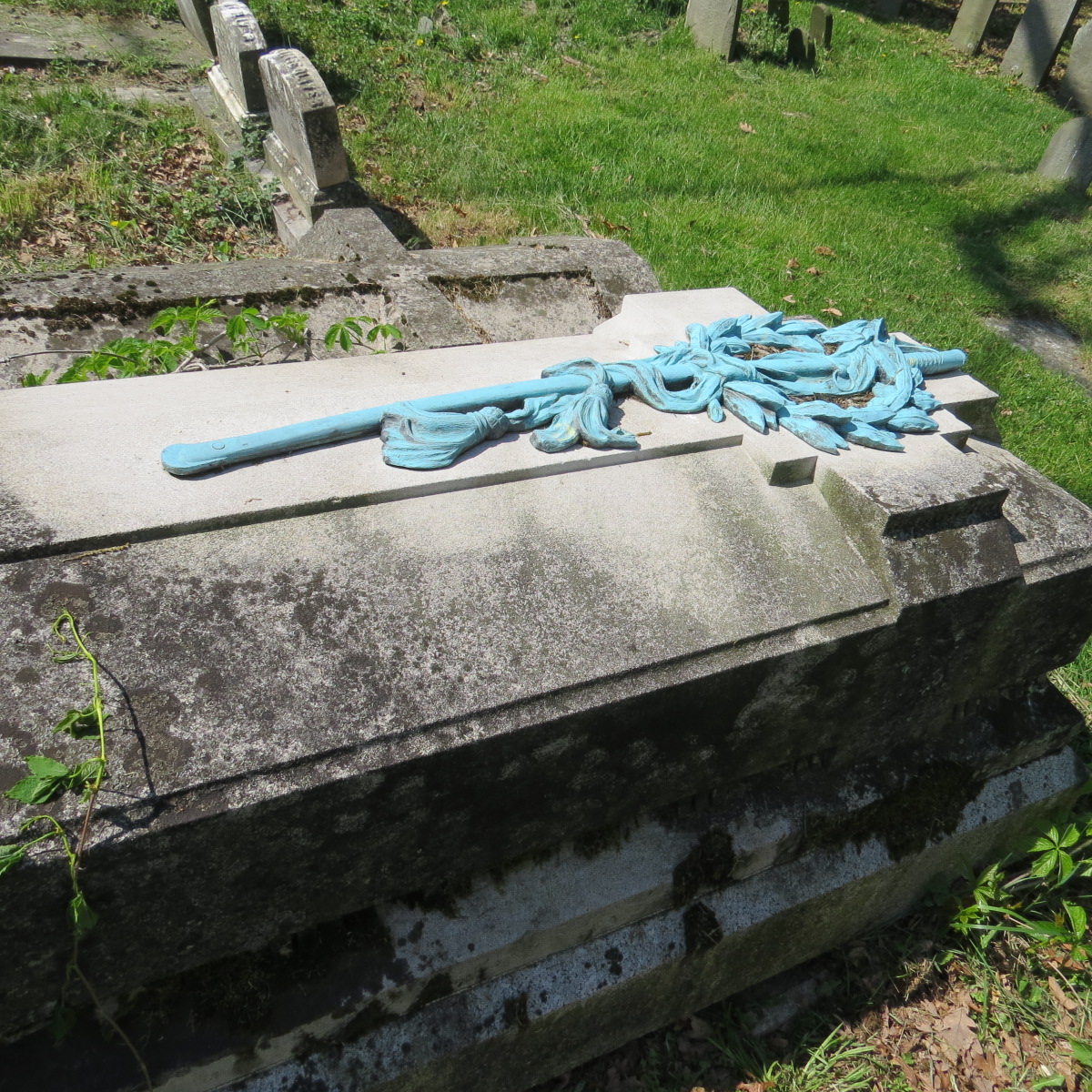 In the oldest section of the Lakeview Cemetery, I was in search of a kinsman when I came to a monument with a bronze sword lying across the top. Being familiar with this military symbolism, I walked to the back of the monument to see whose tomb I had found. The stone read: