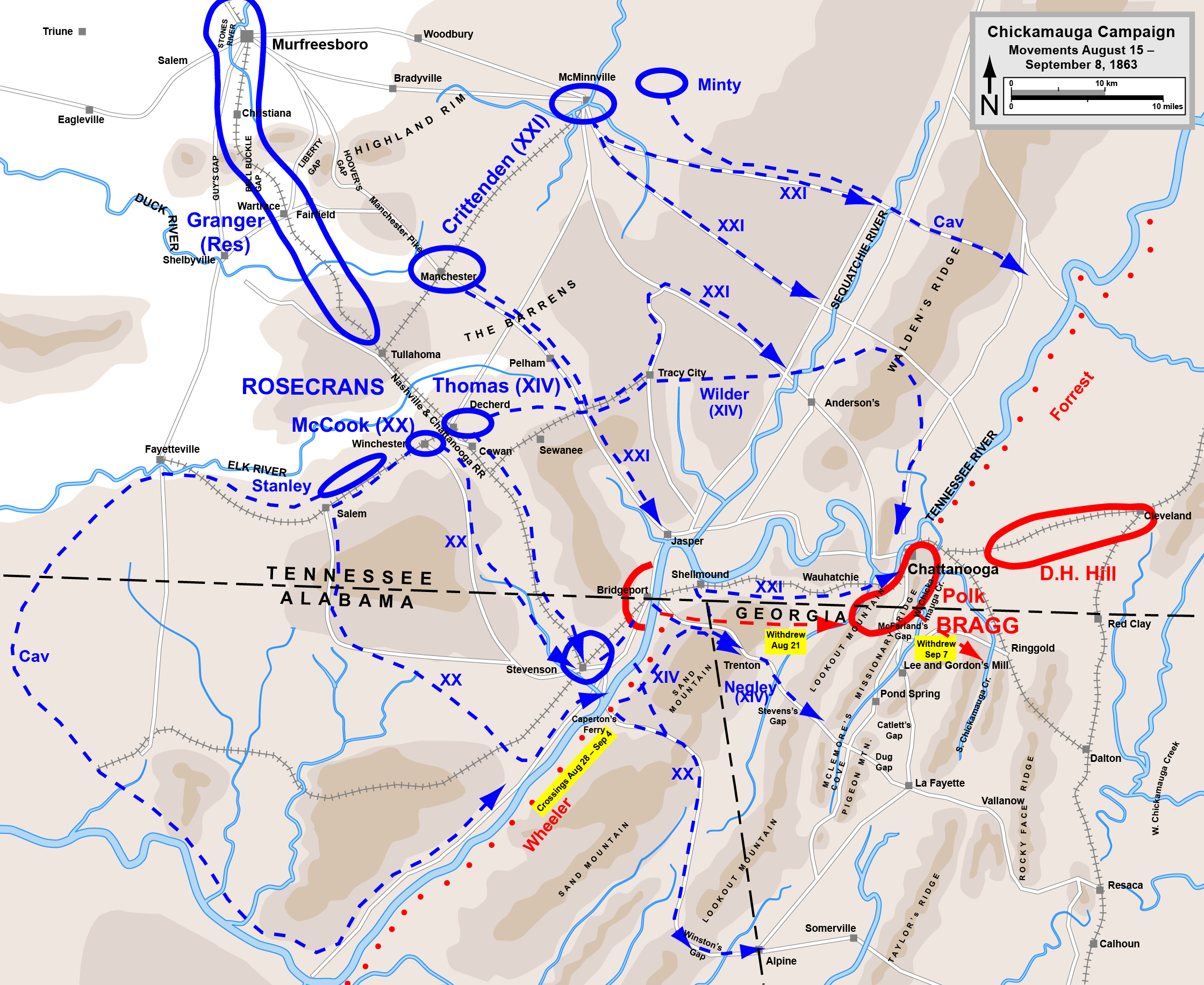 The Chickamauga Campaign, August-September 1863. Map courtesy of Hal Jespersen. www.posix.com/CW