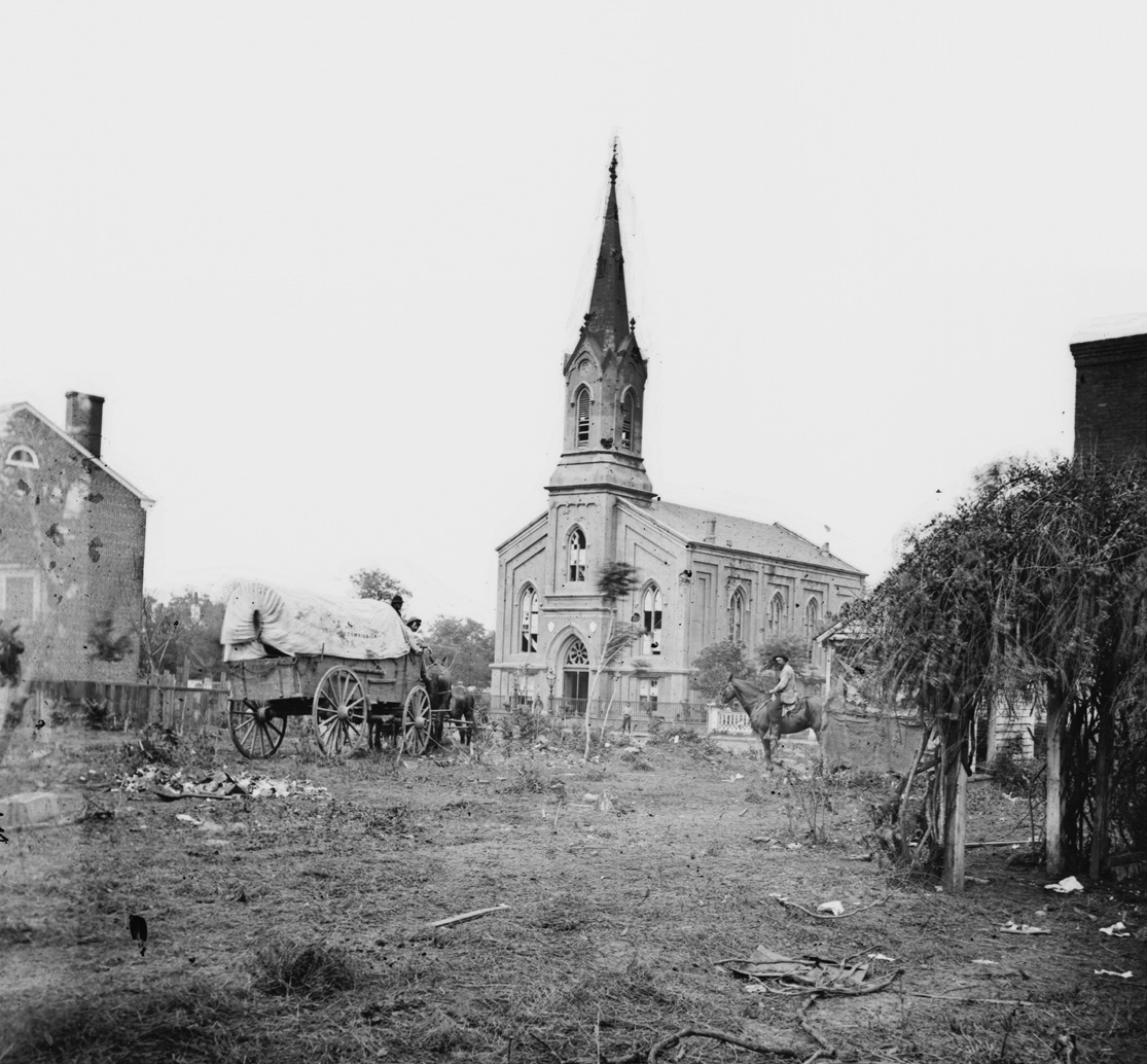 Fredericksburg’s church buildings had suffered extensive damage as a result of an overwhelming Federal artillery bombardment and were later used as army field hospitals. The devastation forced most townspeople to flee the town. In an article published in the London Times on January 23, 1863, a reporter penned a portrait of the destruction. He wrote: Nevertheless a more pitiable devastation and destruction of property would be difficult to conceive. Whole blocks of buildings have in many places been given to the flames. There is hardly a house through which at least one round-shot has not bored its way, and many are riddled through and through. The Baptist church is rent by a dozen great holes…