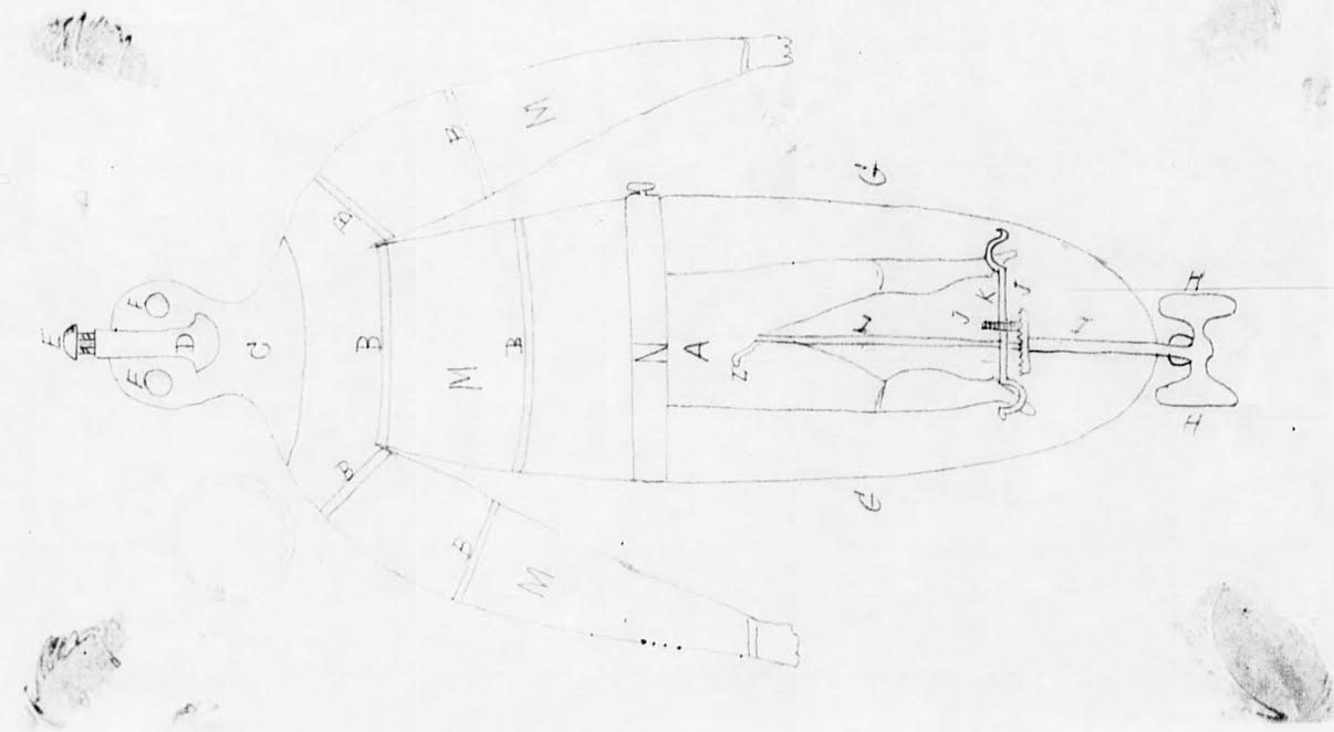 The diagram provided in Wilson’s letter displayed a suit designed for wear by a single sailor. Equipped with a mask and primitive snorkel, a rubberized jacket fitted around the wearer’s torso and arms covered in canvas and oil on the exterior, and a metal shell covering the legs, the contraption possessed a resemblance more of a mermaid than a tool of war. Pedals attached to the feet of the wearer turned a small propeller, which pushed the armor forward. Instead of a rudder, the wearer would use their hands to steer in the desired direction. When weighted sacks were attached to the armor, neutral buoyancy could be achieved and the wearer might swim unnoticed under the waves. Wilson claimed that the wearer could either tow or carry tied to the rubber jacket a 100-pound torpedo that could be screwed into the wooden hulls of Union ships. Boatswain Wilson himself volunteered to both create a prototype and use it in experiments, citing his “years of experience with marine armors” as pretext.[i]