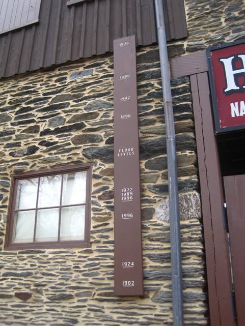 Historic Flood Marker in downtown Harpers Ferry. (Author’s Collection)