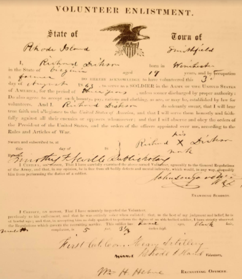 [13] Richard Dickson, 11th USCHA, Compiled Military Service Record. RG 94, Compiled Military Service Records of Volunteer Union Soldiers Who Served with the United States Colored Troops, National Archives and Records Administration, Washington, D.C.; Richard Festus, Certificate of Death, File No. 9377, Virginia Death, 1912-2014, Virginia Department of Health, Richmond, VA.