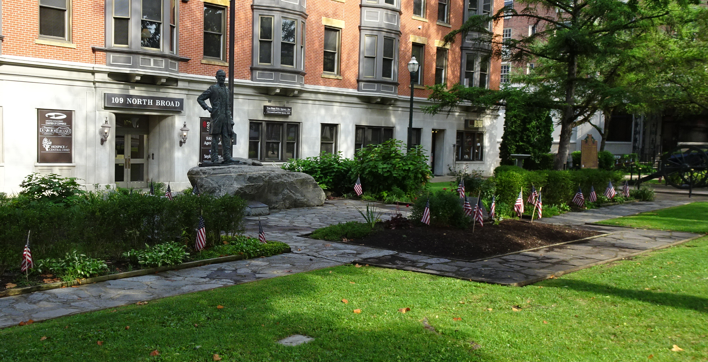 At the corner of Main and Front streets, we found a small park with a memorial to Sherman, including an Ohio Historical Marker, a nice statue, and an 1861 Parrott gun.
