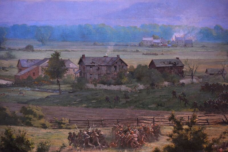 The following six images are details taken from the painting. They were photographed by Jason Minick and provided by Katherine Jeschke of the Gettysburg Foundation. Visit them at https://www.gettysburgfoundation.org/. The images represent only a small portion of the complete painting. The panels speak for themselves.
