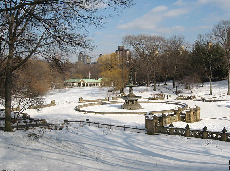 According to an article published in the New York Herald on December 24, 1864, ice-skating on Central Pond gained a happy reputation at the beginning of the decade and had increased popularity each year. A system for judging and announcing ice thickness and safety had been developed, and the citizens eagerly watched for a red ball in the park which signaled skating season had begun. On the city ponds, workmen swept away the snow and scrubbed off the rough piles of ice or frozen snow to make a smooth, glassy surface for easy skating. According to the paper’s account, the ponds were prepared for skaters by noon on fine days when the ice was safe. Skates and ice chairs were available for rent in Central Park, and the enterprising merchants set up booths to sell hot drinks and refreshments.