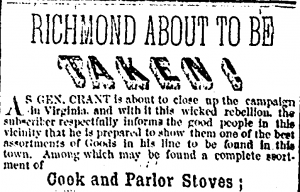Celebrate the Expected Capture of Richmond with a New Stove!
