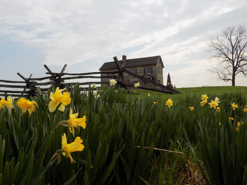Daffodils bloom near Henry House, quietly nodding at the silent cannons nearby.