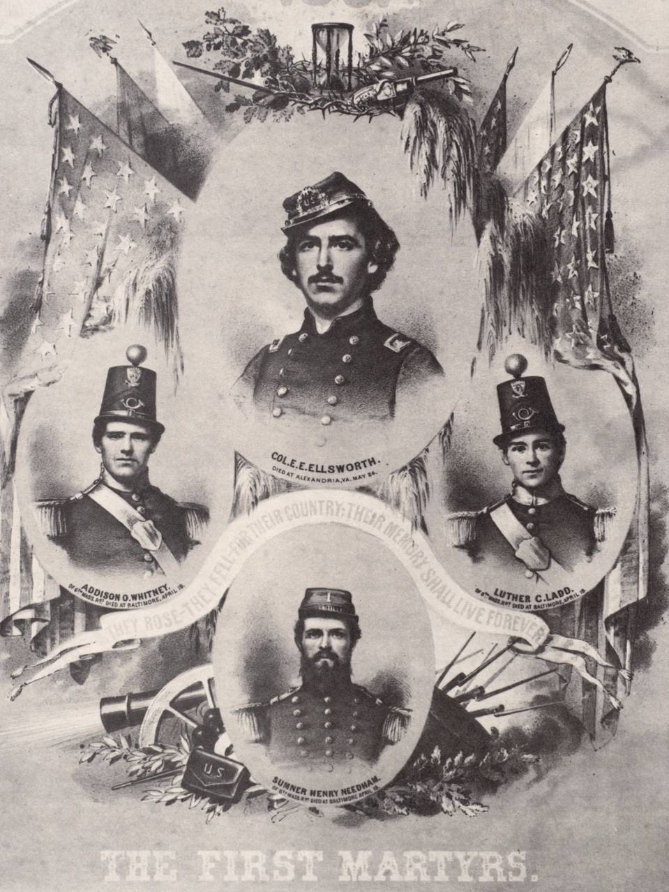 When I introduce Colonel Elmer Ellsworth, who died 157 years ago today, as the “first Union casualty” of the Civil War, I get a twinge of conscience. He was not the first battle casualty. Four soldiers who lost their lives changing trains in downtown Baltimore were the first. Their names are Corporal Sumner Henry Needham, Private Luther C. Ladd, Private Addison Whitney, and Private Charles Taylor. Say their names.