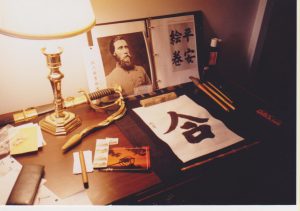 Japanese calligraphy (shodo) has fascinated me since I was very young. Actually originally, it was the love of the Chinese characters and then when I learned about Japanese arts and language I found that the Chinese characters were also used in their ‘alphabet.’ I am not fluent in Japanese or in the writing of the language but I do learn characters and practice what I know just for aesthetic reasons. Actually, at one point, where we practiced shodo as part of the Aikido training, I had some of my samples published in Japan. An honor, but as an American student training in Aikido in America. Actually, I think I have a snapshot of shodo I was doing in my off hours and in the Gettysburg Hotel during filming.
