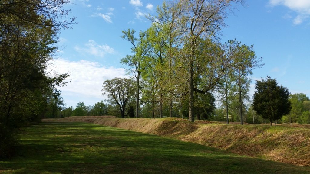 Richmond National Battlefield Park preserves Fort Harrison as part of a narrow 6.5 mile corridor of Union and Confederate earthworks stretching south from Battery Alexander on New Market Road (modern Virginia highway 5) to Fort Brady overlooking the James River. A log cabin just north of Fort Harrison served as the original headquarters for the entire park. It is only open seasonally, dependent on staffing, but was my favorite place to work in the park. Visitors are nevertheless encouraged to tour the site even if the building is closed. An interpretive walking trail leads through the fort and its wayside exhibits do a fantastic job of placing visitors in “you are here” locations of wartime photographs. The park road from Route 5 to Fort Brady is also the best route for biking among the Richmond National Battlefield Park sites and connects with the Virginia Capital Trail.