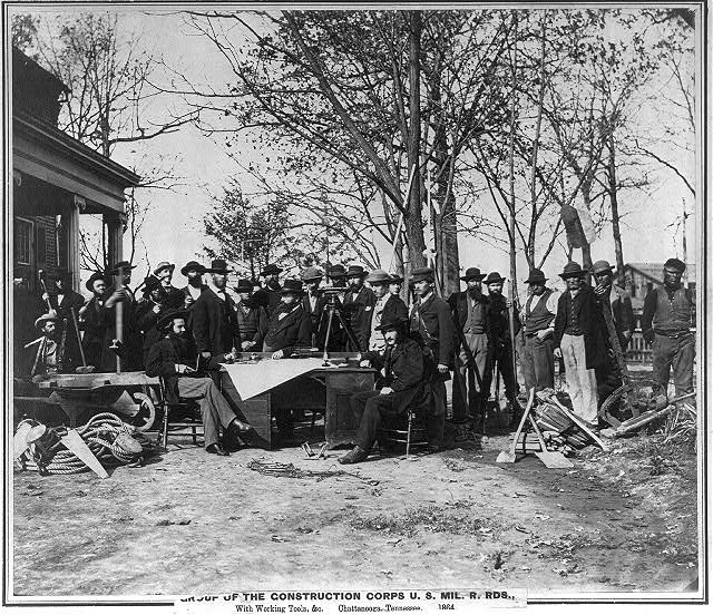 Group of the Construction Corps U.S. Military Rail Roads, with working tools, etc., Chattanooga, Tennessee, 1864.