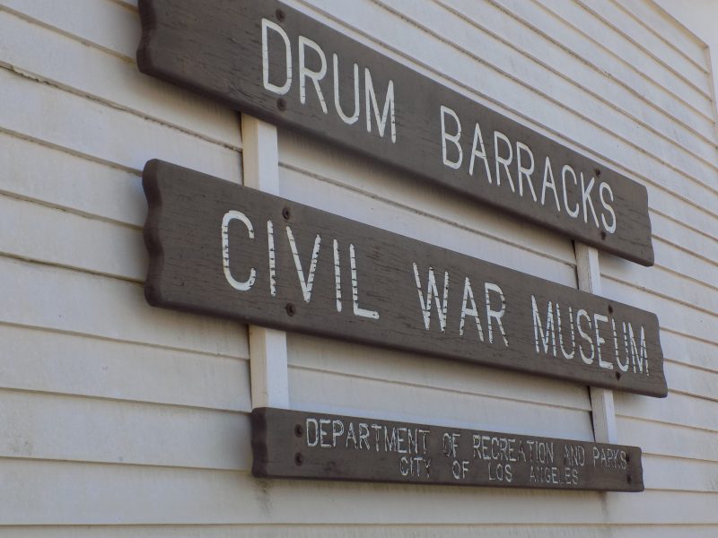 The museum structure of the Drum Barracks and a privately owned, though historically protected, gunpowder arsenal are all that remain of Camp Drum which was built in 1862 to bring a strong Federal presence to the Los Angeles area. There were simply too many Confederate sympathizers in Southern California and the overland trails needed guarded so several influential men donated land near Port of Los Angeles (now Wilmington/San Pedro area) for a large military training camp which operated between 1862 and 1865.