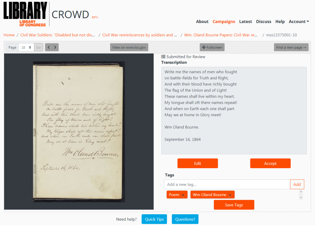 By the People Crowdsource Beta, Library of Congress, https://crowd.loc.gov/.