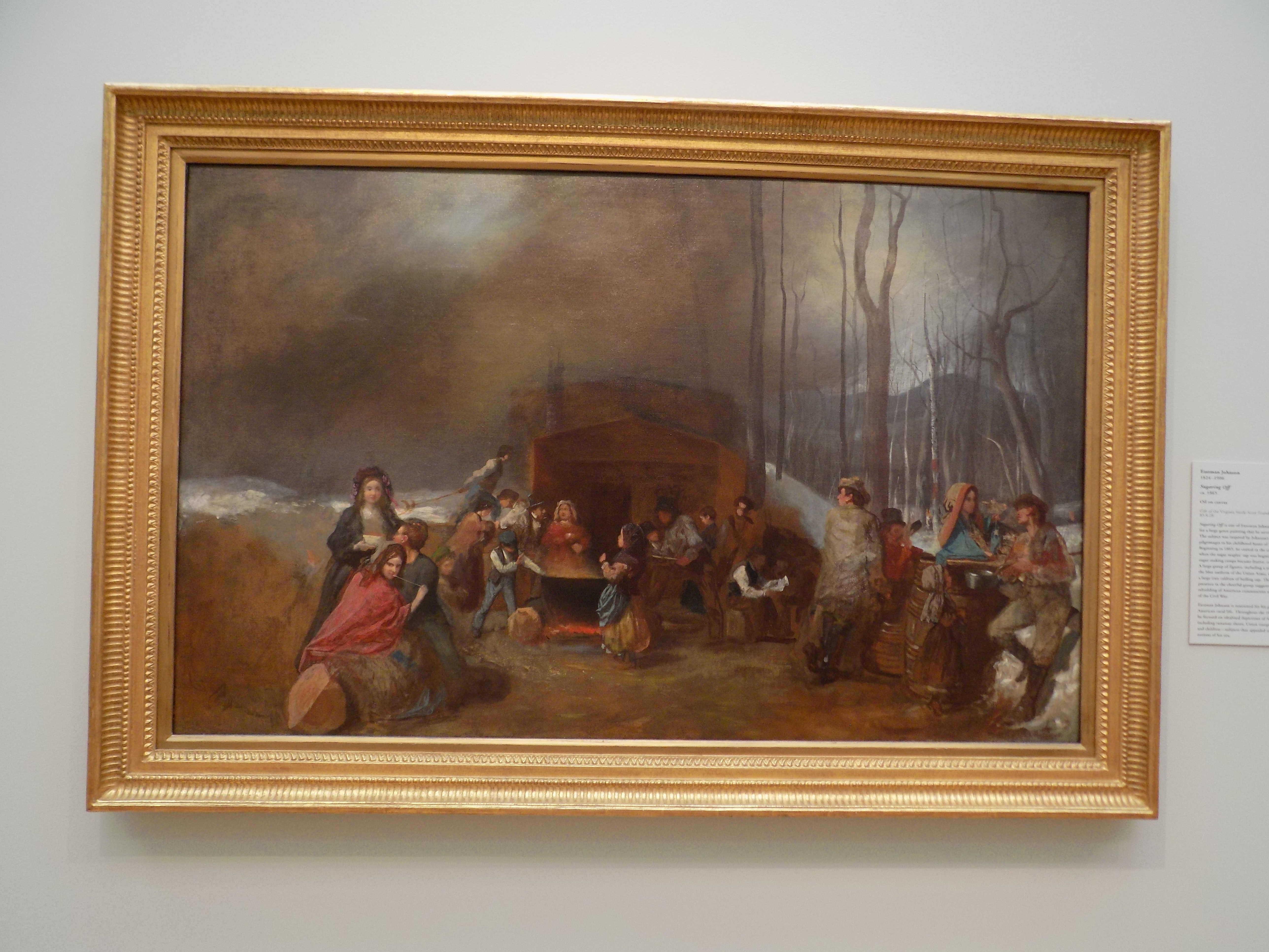 Sculpture of Lincoln and a cast of Lincoln, Stanton, and Grant are also on display along with paintings from the Civil War era. Don’t miss Eastman Johnson’s unfinished painting of a post-war maple sugaring scene; note the pieces of a Union uniform still worn by one of the figures in the painting.