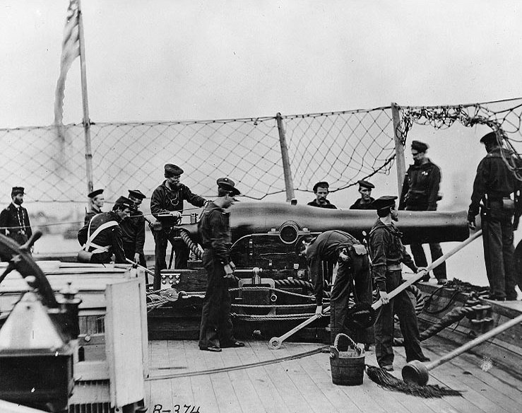 A sailor with Farragut at New Orleans described naval combat: “And now the shot and shell were flying and bursting around us in all directions, crashing through our ship, scattering splinters and bolts on all sides, killing and wounding our men in a terrible manner…. I must confess for my part, though, I cordially disliked the business, as these big 100-pound shells, moving with fiendish velocity within a few feet of a man, make the most hellish and disagreeable noise imaginable. I thought every shot was within a few inches of my head, or aimed directly at me, and, as a matter of course, I felt, as it were, compelled to dodge frequently to avoid them.”[3]