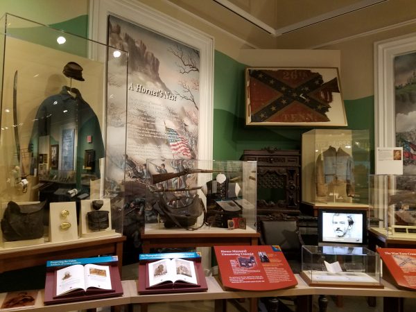 Of particular interest for Civil War researchers, there is a large section of artifacts, letter quotes, and wonderful details about the conflict in the region. An original Union flag flown in Knoxville during the war, a Confederate battle flag, artifacts and letters from the bridgeburners, uniforms, and more grace the collection. There are also displays about the Reconstruction Era, with a focus on Andrew Johnson; some of his original tailor ship items can be viewed.