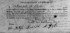 Joseph Amos Pyle was born in eastern Ohio on June 08, 1847. That would make him all of sixteen years old when he enlisted in Company C of the 1st West Virginia Infantry on February 29, 1864, though he swore on his enlistment paper that he had reached his eighteenth birthday. His older brother, John Bone Pyle, had served in the same company since late 1861, and young Joseph was anxious to join him before the war was over.