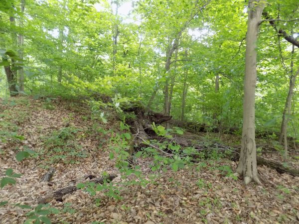 The trail leads to an open, high ground, meadow area which historically would have offered a view toward Knoxville and the other forts in the area. Today, foliage blocks most of the view, but there is a comfortable seating area here to relax and take-in this historic piece of the great outdoors. Historical reminders have been added here. In addition to interpretive signs, an inset of pavers memorializes the words of Union officer and engineer Orlando Poe: “From these heights artillery fire can be delivered…” It’s a grim reminder that once upon a time this park-like area served a martial purpose with deadly weapons. It’s a place to contemplate the past of war and hope for a future of peace.