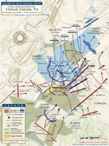 For the anniversary, we’ve collected some blog posts from our archives about this important battle and also added a American Battlefield Trust’s animated battle map for Cedar Creek which provides a great overview.