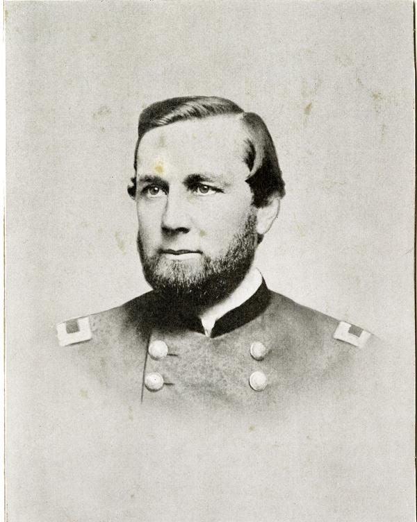A month after the Civil War erupted, 30-year-old Milton S. Littlefield was elected a captain in the 14th Illinois Infantry in May 1861. He led his company at the Battle of Shiloh in April 1862, where he distinguished himself and received special mention from his regiment commander, Colonel Cyrus Hall. Sergeant J.A. Davis praised “the daring gallantry of Captain Littlefield, of Company F, who stood erect in front of his men, during the whole engagement, but escaped all injury, except having about three inches torn from the left shoulder of his coat, by a ball from the enemy.”[2]