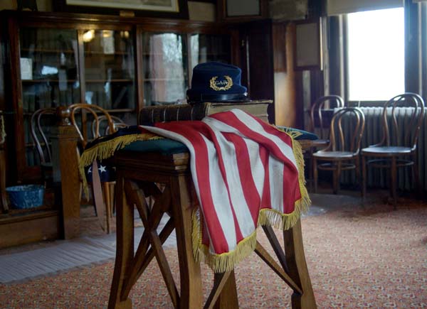 DK: The Captain Thomas Espy GAR Post 153 was chartered in 1879, moving into the Andrew Carnegie Free Library & Music Hall (ACFL&MH) in 1906. The Library opened in 1901 and was seen by the Civil War veterans as a symbol of strength and permanence. Thus, in 1905 they approached the Board of Trustees asking for space within the building where they could hold their meetings and house the artifacts, books and weapons they had collected over the years. Our GAR Post is the last Post left in the country that has been completely restored, is significantly intact, and was never used for any other purpose. When the last veteran passed on in 1938 the room was locked and remained locked for over 50 years. To put its importance in perspective, at one time there were more than 7,000 GAR Posts in the country. It’s unique!