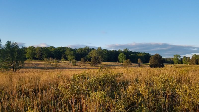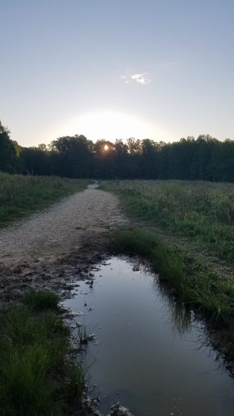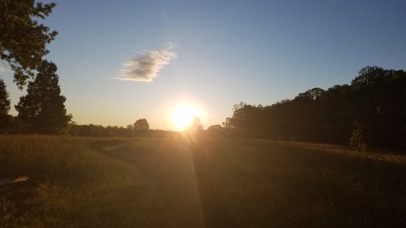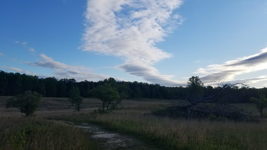 After sitting near the Landram House for a while and reading from the Official Records, it was time to cross the field to the Confederate lines. Are the clouds forming columns in the sky?