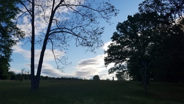 The clouds started blocking the sun’s brightness, silhouetting the trees and monuments at The Angle.
