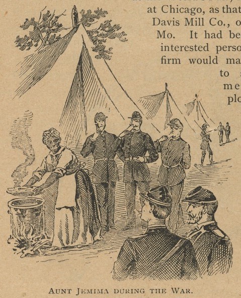 Among the notable incidents in her experience might be named the meals served by Aunt Jemima to the leaders of the Confederacy near the close of the war, when those gallant men, harassed and pursued, surrounded on all sides by the Union troops, deprived of almost the necessaries of life, found in Aunt Jemima–the ex-slave–a friend indeed. Many were the frugal meals served at her little cabin; for the gunboats had long ago destroyed the planter’s mansion.