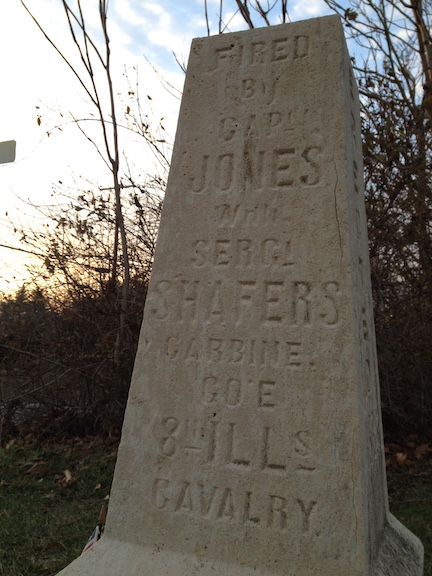 2. Many years ago a friend and I decided to find the First Shot Marker. (Its location was just an arrow pointing off his map.) We didn’t spot it until the third time we drove by. I had been expecting something akin to the Eiffel Tower (well, a slight exaggeration), but it was actually dinky enough to be almost totally obscured by some bushes. Hooray, the bushes have vanished!