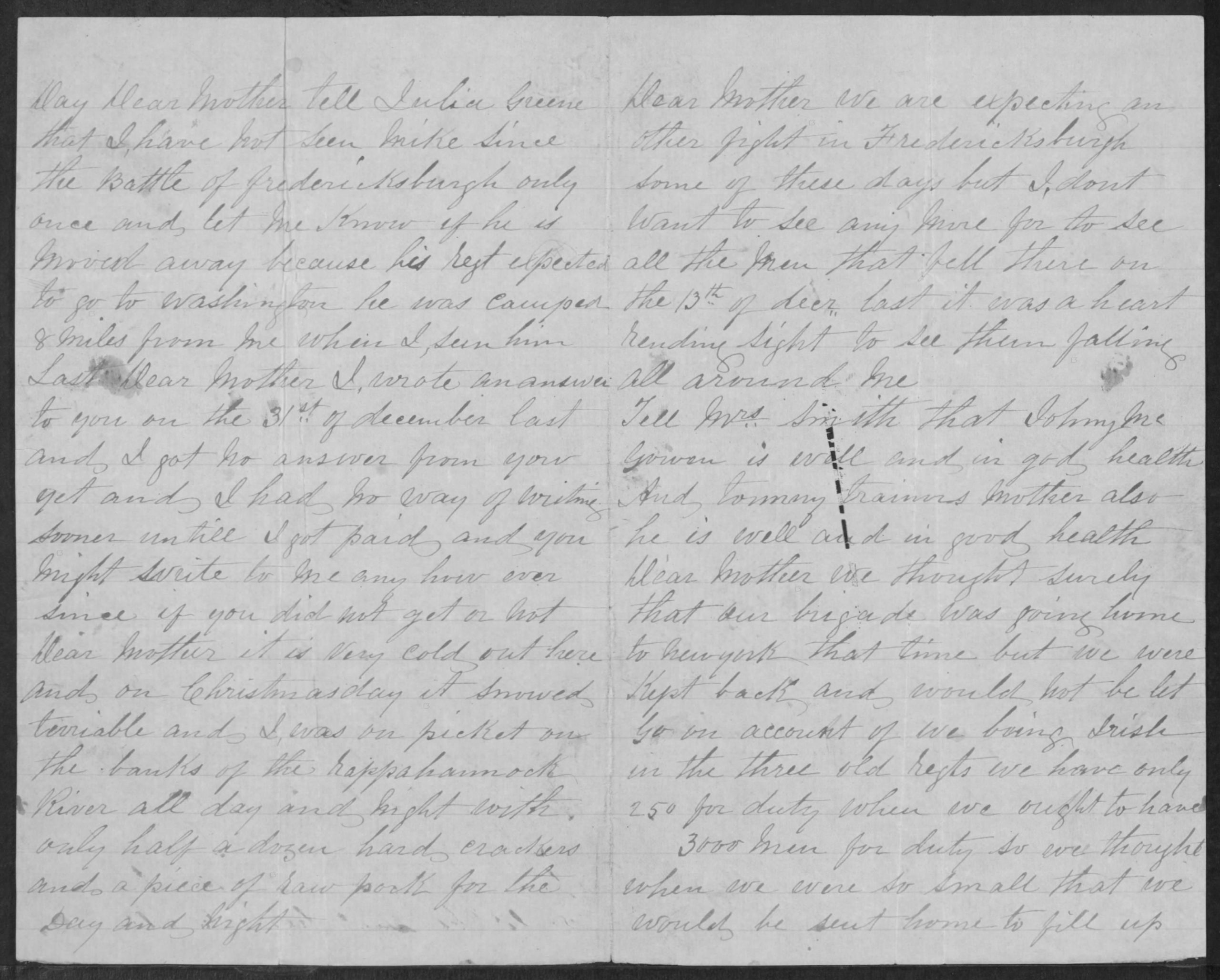 [17] Peter Welsh, Irish Green and Union Blue: The Civil War Letters of Peter Welsh, Color Sergeant, 28th Regiment, Massachusetts Volunteers, eds. Lawrence Frederick Kohl and Margaret Cossé Richard (New York: Fordham University Press, 1986), 40.