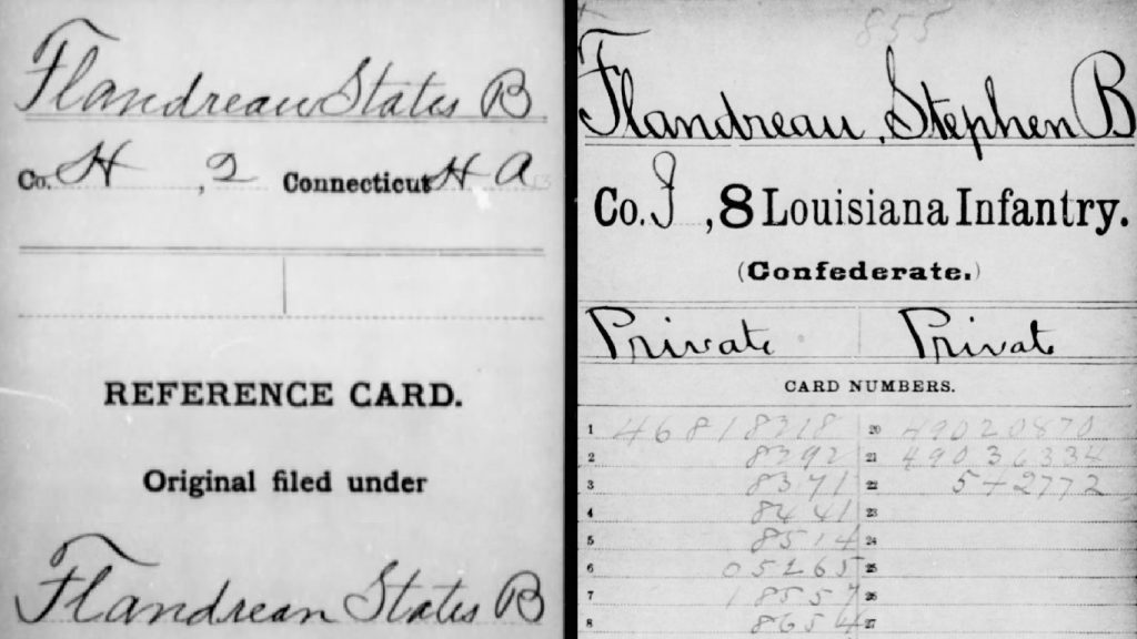 Despite his Yankee roots, at the outset of the Civil War he enlisted into Company I of the 8th Louisiana Infantry on June 12, 1861, under the name Stephen Flandreau. A few of his records show that he was promoted to sergeant and he remained with his company until captured on June 2, 1862 in a skirmish near Strasburg, Virginia. After a two-month stay at Fort Delaware, he was exchanged on August 5, 1862, listed at the time as “S.B. Flanderson.” Rejoining his regiment, Flandreau fought in the battle of Kettle Run, near Bristoe Station, on August 27, 1862, where he was wounded. His wife Alzenith died that October and States’s enthusiasm for the Confederate cause began to wane.